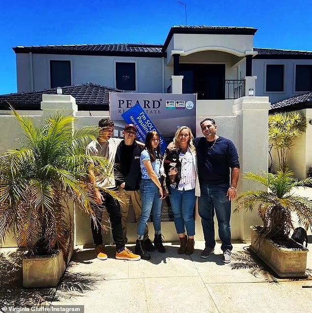 Furthermore, uncertainties persist regarding property rights. Records indicate the luxurious six-bedroom beachfront residence in Perth’s Ocean Reef, acquired by the family for about $1.6 million in 2021, was titled exclusively to her husband Robert Giuffre, mirroring their prior Queensland home.