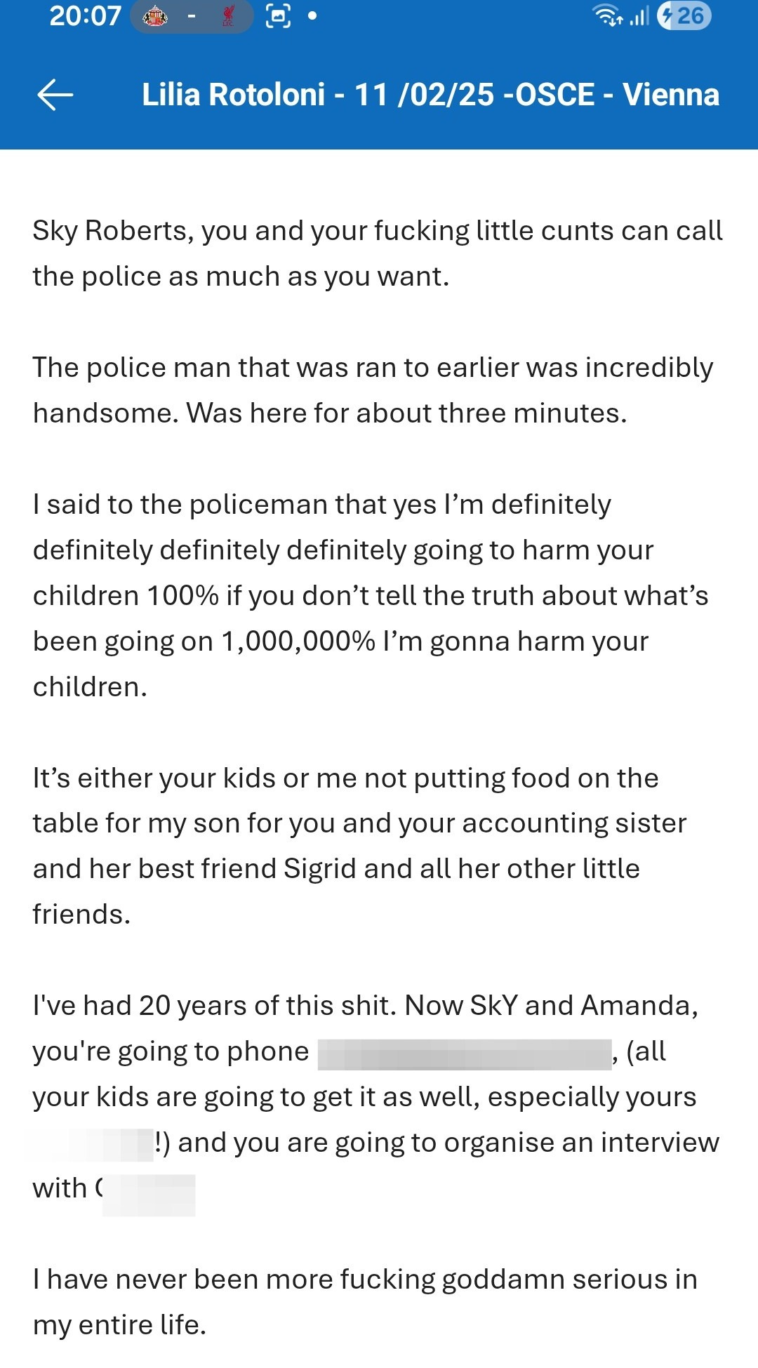 Ransome’s recent rants have already led to Dutch police acknowledging that her emails constitute a crime and that they have attended her home to notify her of an ongoing criminal investigation.